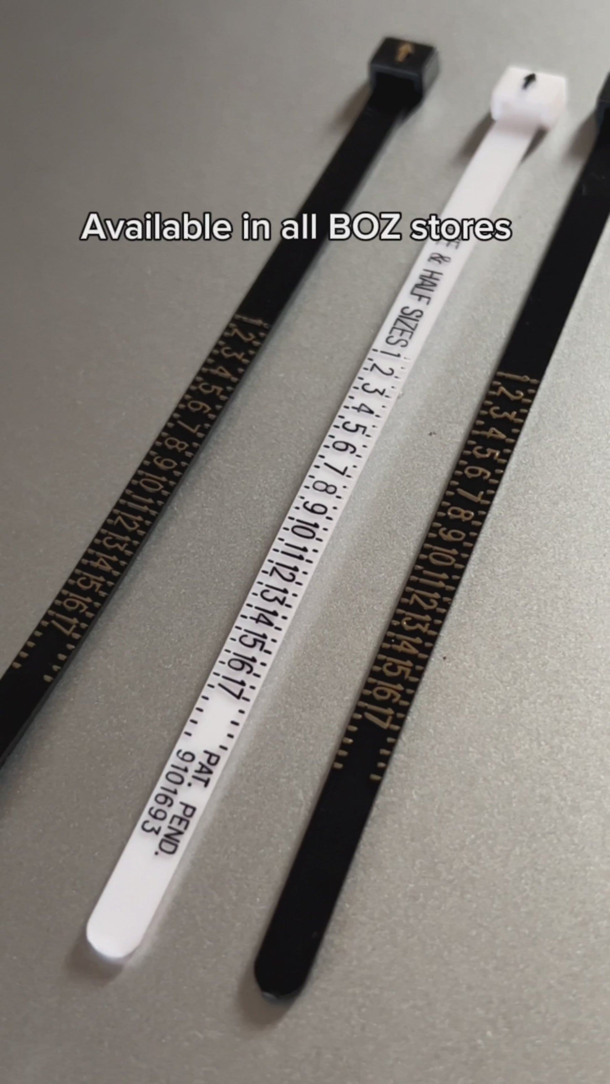 Crafted from durable, flexible material, it measures both US and UK ring sizes with clear, easy-to-read markings. Ideal for at-home use, it’s lightweight, portable, and ensures a flawless fit for any BOZ ring design.