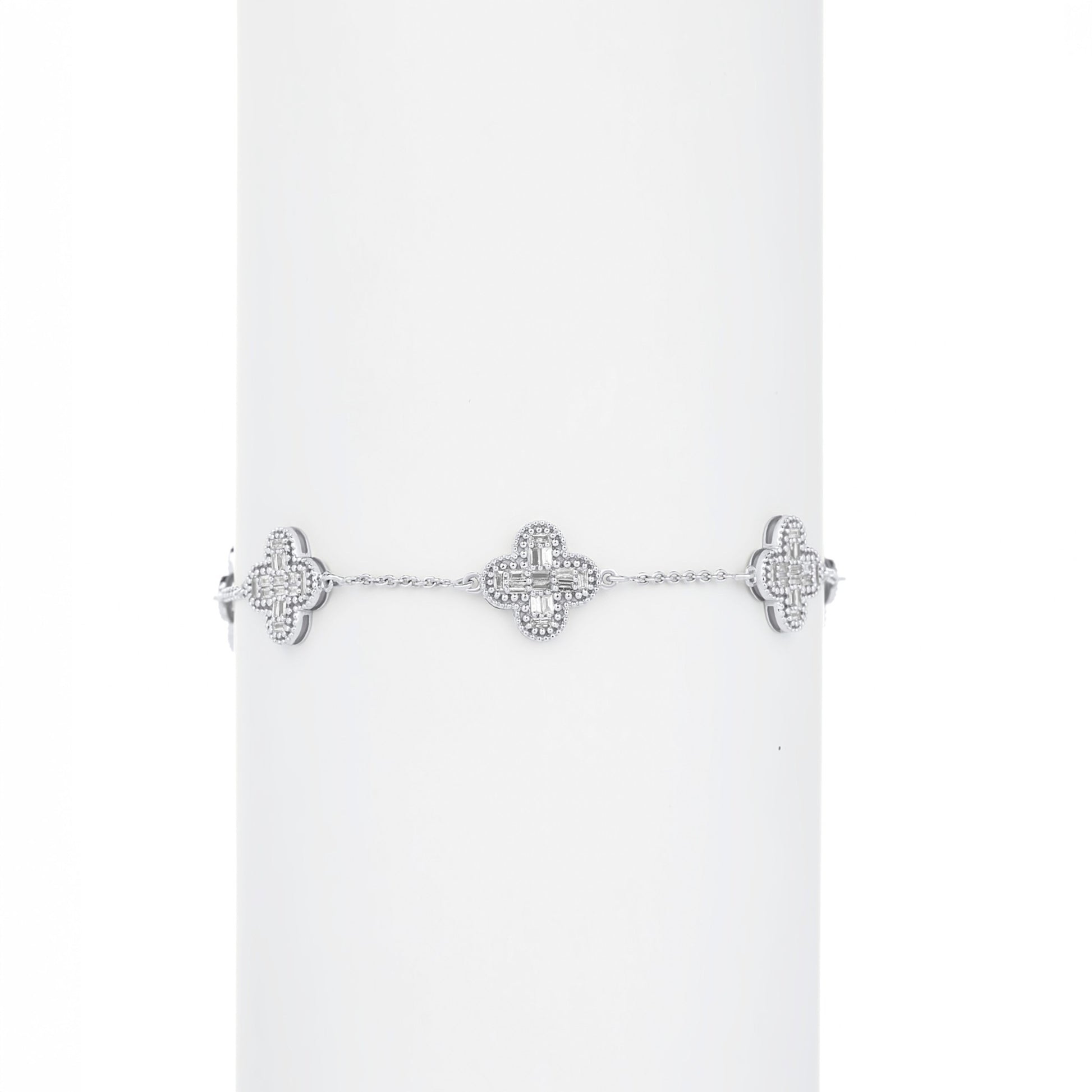 Baguette Clover Diamond Bracelet in 18KT Gold