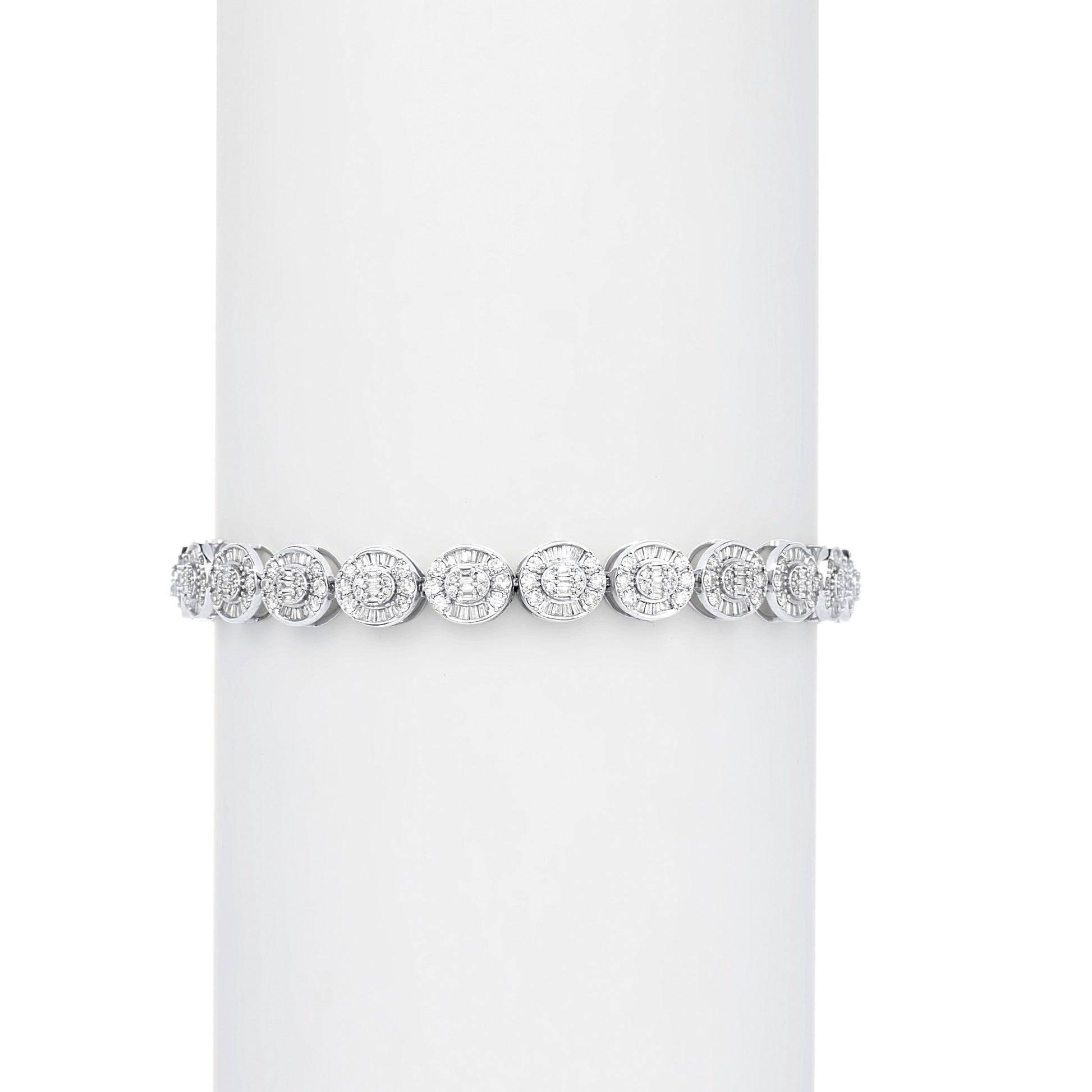 Timeless elegance meets modern brilliance in this meticulously crafted Oval Baguette Diamond Bracelet. Designed in lustrous 18 karat gold, each oval link is set with a dazzling center cluster of brilliant-cut diamonds, encircled by a radiant halo of tapered baguette diamonds. The seamless design offers a continuous flow of sparkle and sophistication around the wrist.