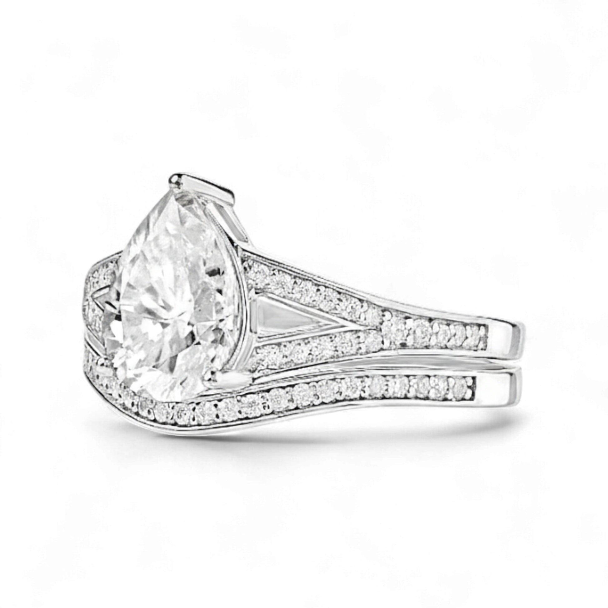 This bridal set is more than jewelry, it is a promise sealed in brilliance. The pear cut symbolizes tears of joy and enduring romance, while the GIA certification ensures confidence in every detail.