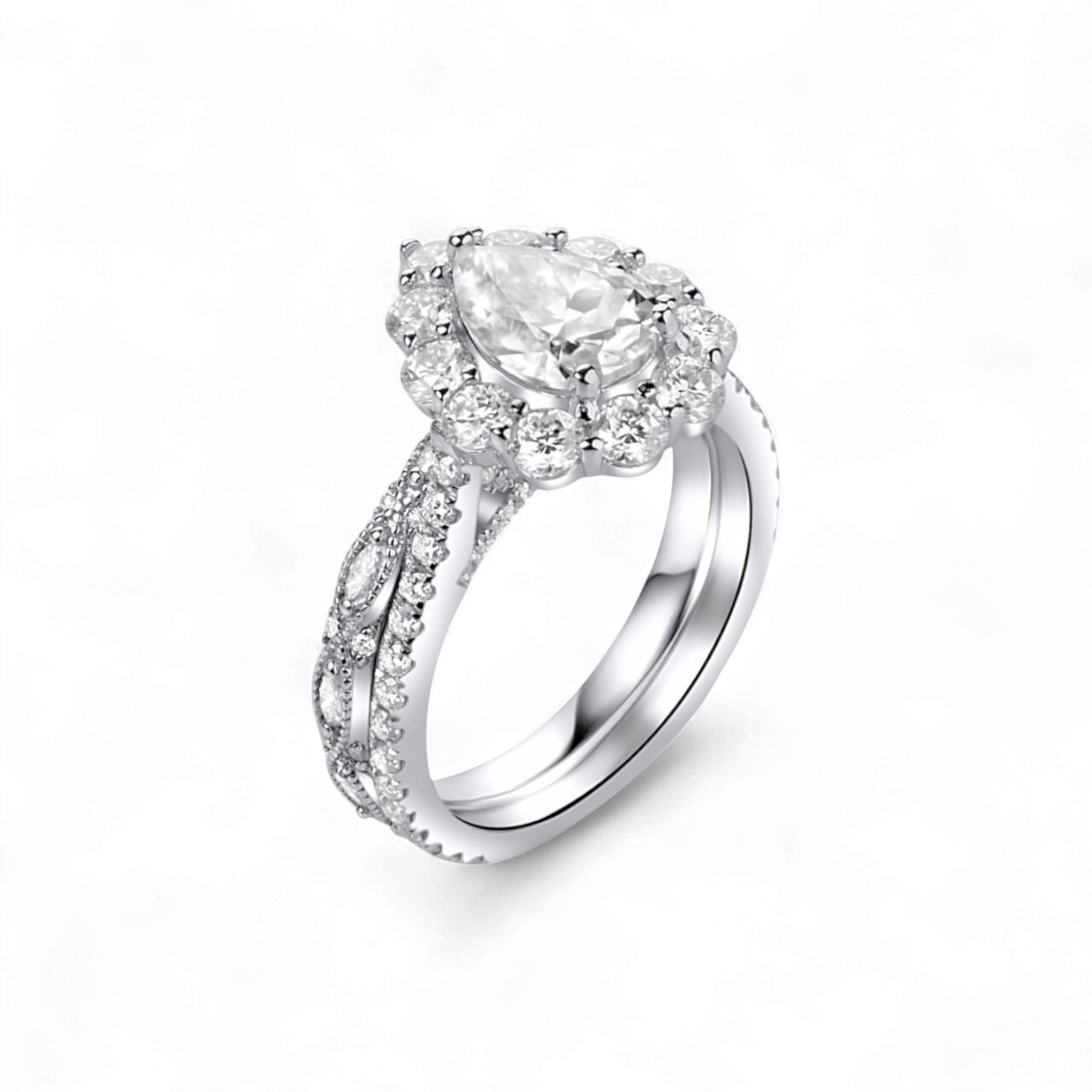 Home Collections Bridal Set BOZ Lavie Pear Cut Moissanite Bride Set in 925 Sterling Silver