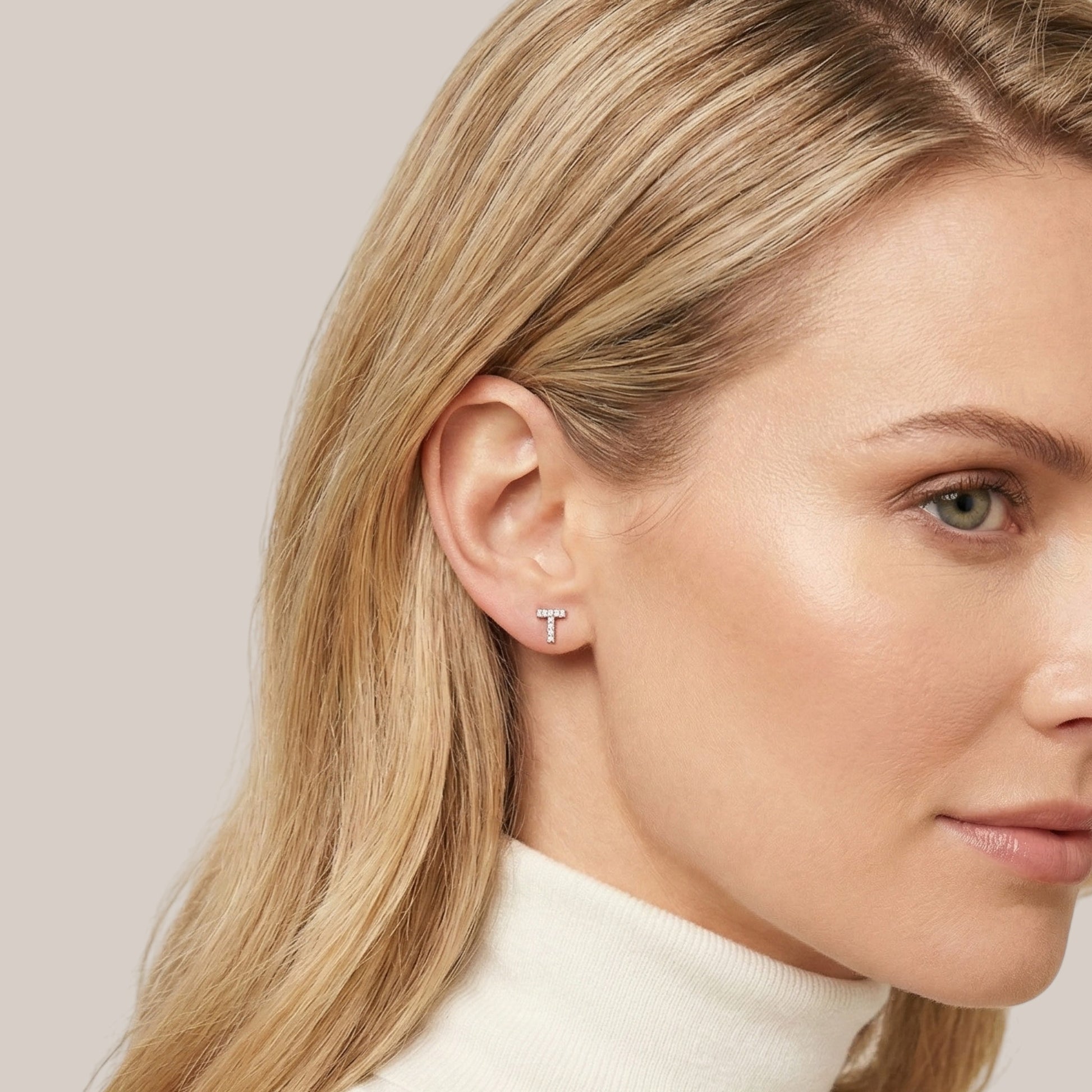 Home Collections Earrings T "Initial" Diamond Stud in 18KT Gold