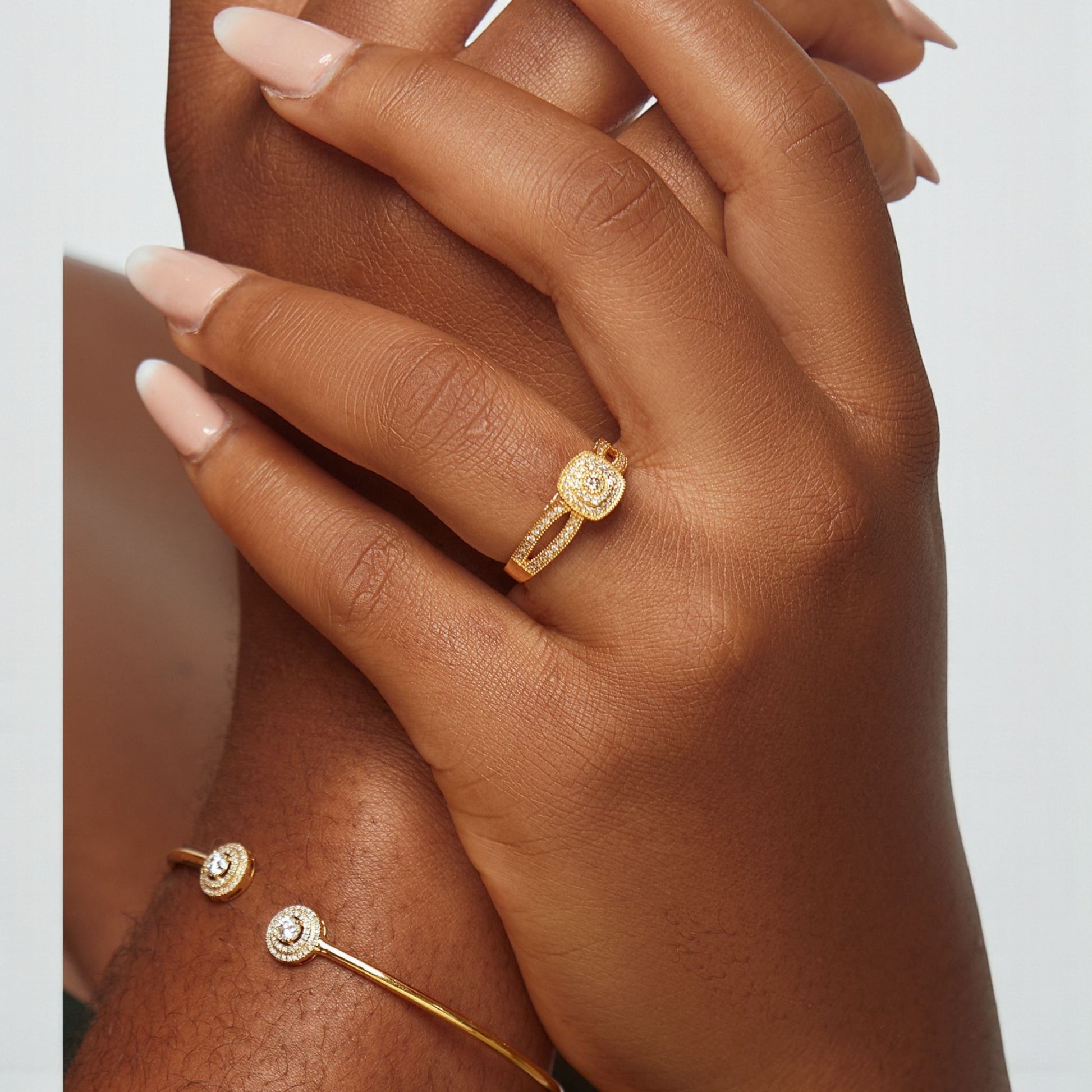 The Cherry Cushion Cut Natural Diamond Cluster Engagement Ring in is a dazzling symbol of elegance and devotion, featuring a brilliant cushion-shaped cluster of natural diamonds that radiate unmatched sparkle. Handcrafted in luxurious 18K gold, the ring’s split shank design is lined with pavé-set diamonds, drawing the eye toward the radiant centerpiece. The cushion cluster design embodies unity and brilliance, symbolizing the many cherished moments that come together to form an everlasting love. Perfect for the bride who desires timeless sophistication with a modern edge, the Cherry Ring reflects BOZ’s promise of love refined, luxury defined, and forever treasured.