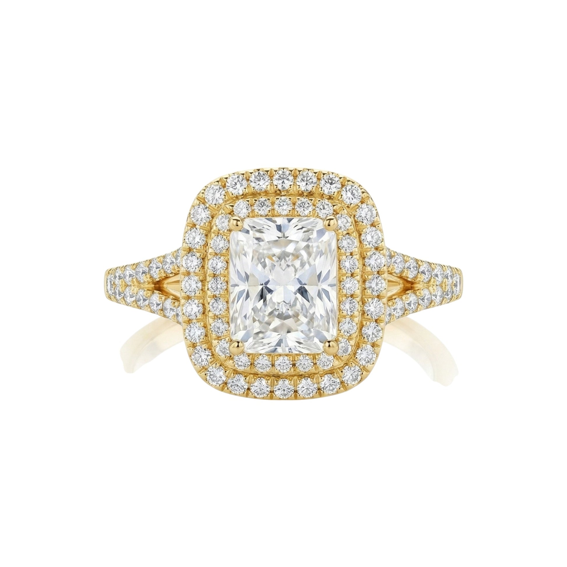 Kylie is more than an engagement ring, it’s a celebration of everlasting devotion. The radiant cut symbolizes light and clarity, while the twin halos and split shank mirror layers of love and protection, making it the perfect reflection of a bond that only grows stronger over time.