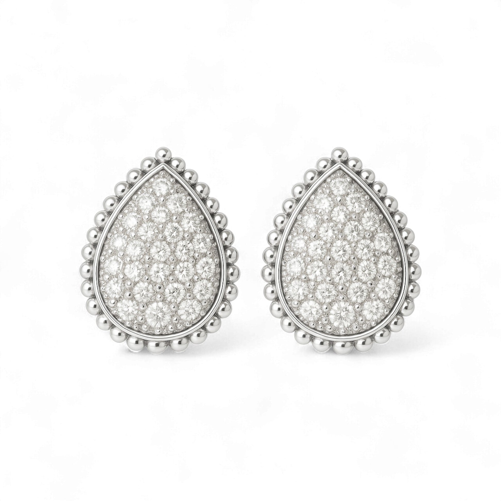 The Radiance Pear Cut Pavé Studs captures timeless elegance with a touch of modern sparkle. Crafted in luxurious 18KT gold, each stud features a pear-shaped silhouette encrusted with meticulously set pavé stones, creating a brilliant shimmer from every angle. Perfect for adding refined glamour to any occasion, these studs are a stunning expression of love and sophistication.