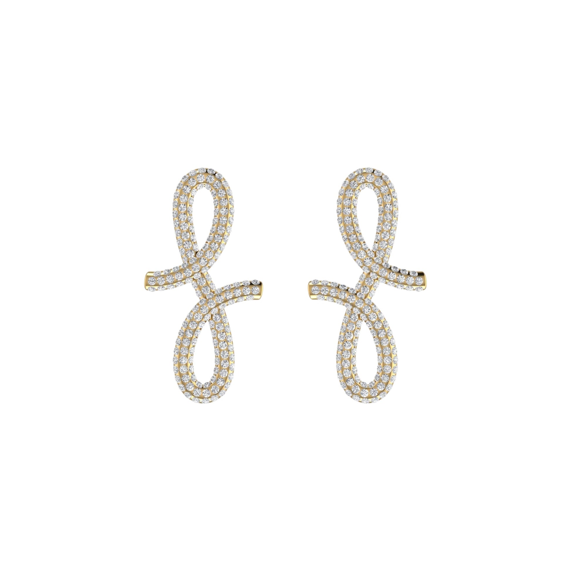 The 3D Oiza Infinie Diamond Earrings are a sculptural expression of infinite love, crafted in radiant 18KT gold and encrusted with pavé-set natural diamonds across every curve of their dimensional infinity silhouette. The three-dimensional design gives depth and presence, capturing the energy of connection that moves, evolves, and endures.