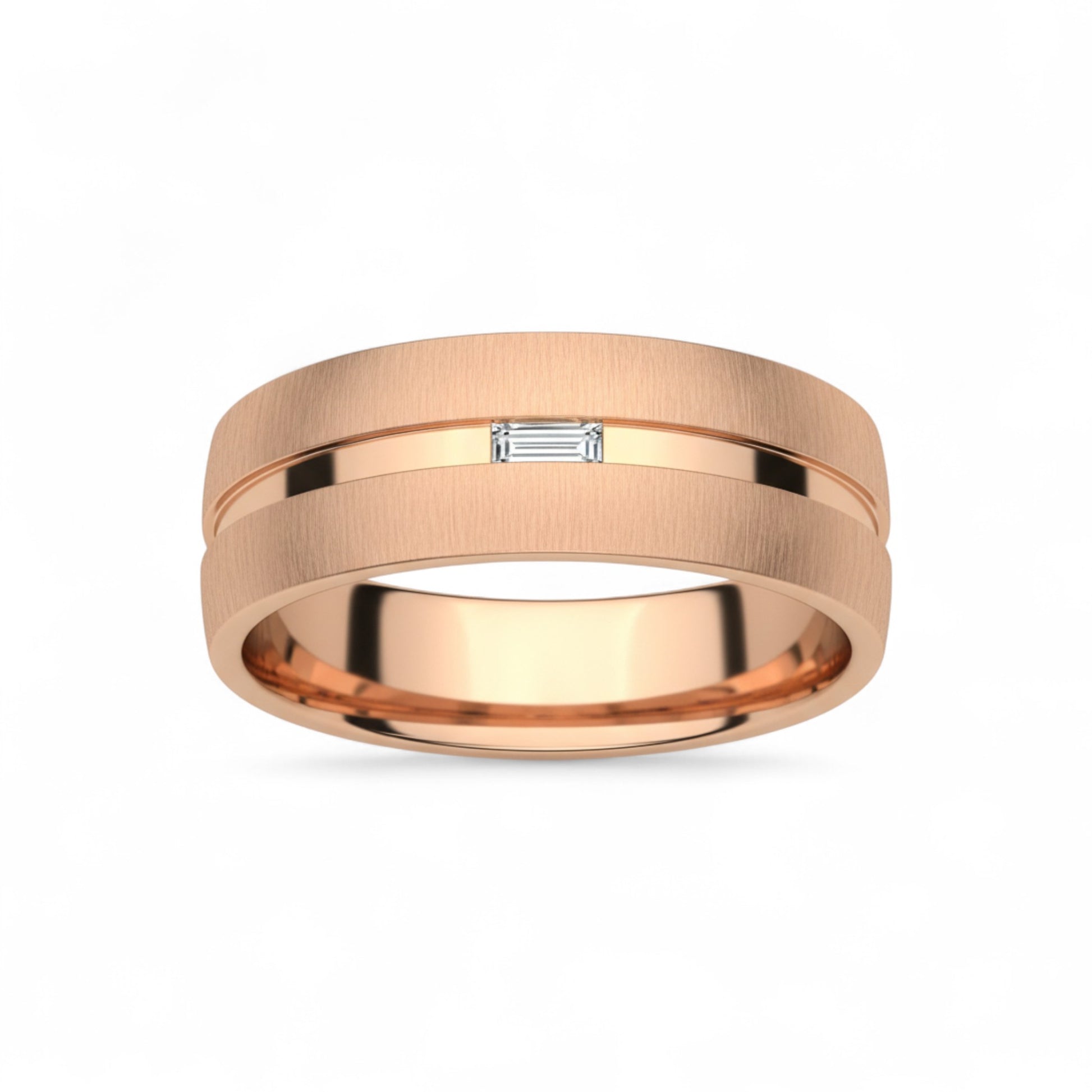 A timeless fusion of brilliance and sophistication, this exquisite band features a striking emerald cut moissanite set at the midline of a lustrous 18K gold band. Designed for those who appreciate understated luxury, the clean lines and elongated facets of the emerald cut create a graceful sparkle, making it a perfect choice for a modern engagement, anniversary statement, or refined everyday elegance. Crafted with precision, this piece radiates both durability and classic beauty,  a true testament to fine craftsmanship and enduring love.