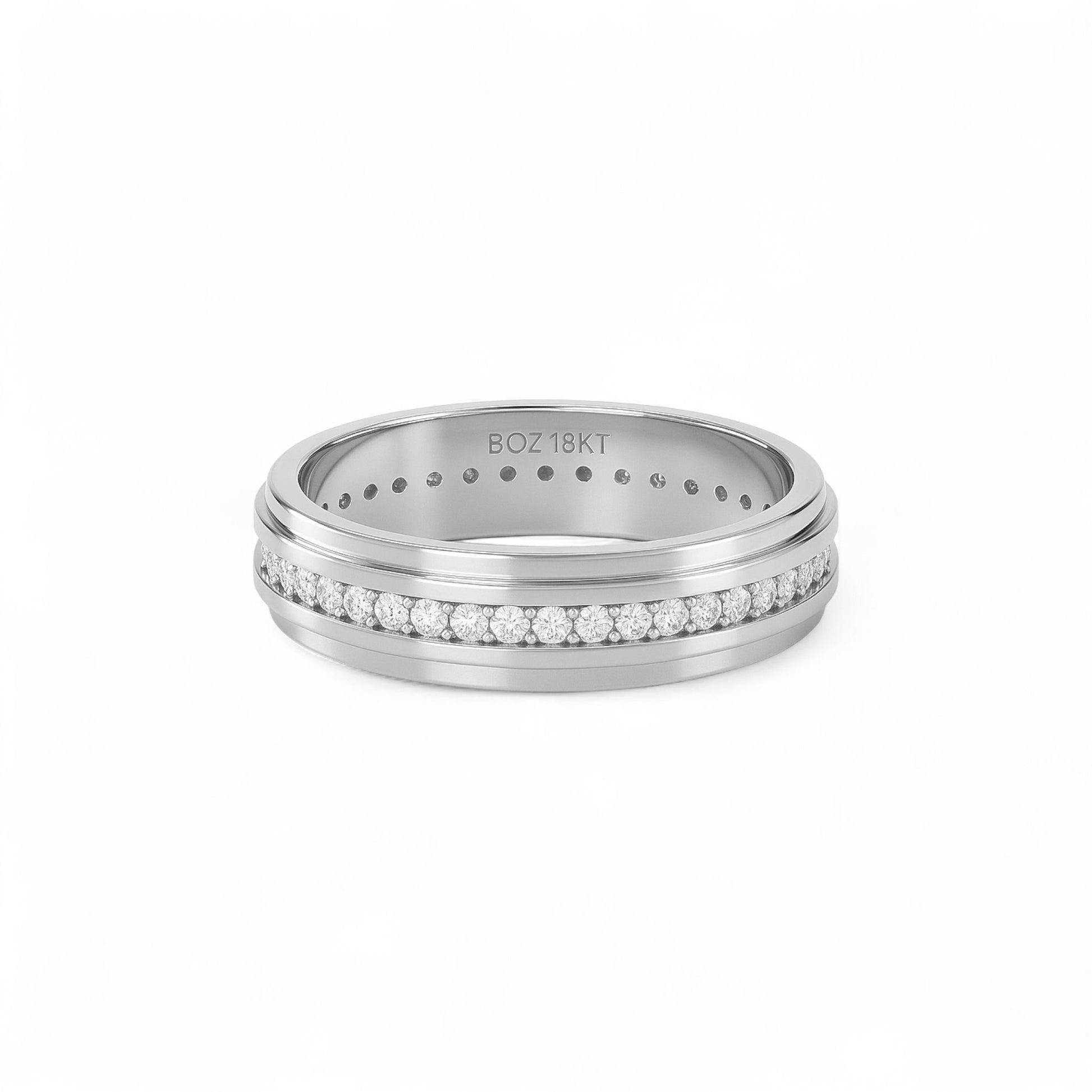 The Emma Natural Diamond Ring blends classic elegance with modern sophistication. Featuring a brilliant row of hand-set natural diamonds framed by polished gold edges, this timeless piece is perfect for weddings, anniversaries, or as a lasting symbol of love and commitment.