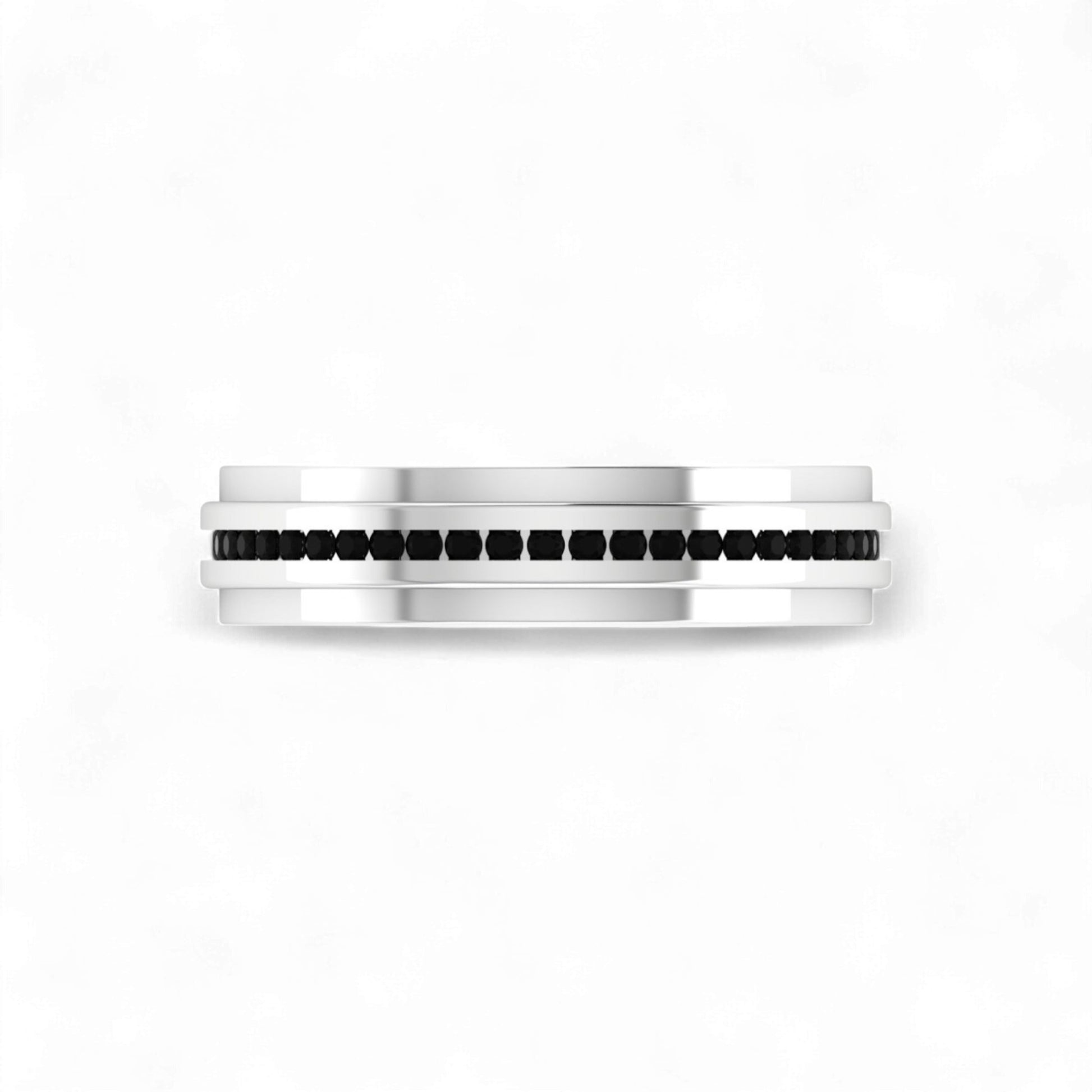 Sleek, modern, and boldly elegant, the Emma Black Moissanite Titanium Band is a refined statement of style and strength. Crafted from ultra-durable, lightweight titanium, this band features a smooth, contemporary finish and is set with a row of brilliant black Moissanite stones, known for their rich, deep sparkle and exceptional hardness.