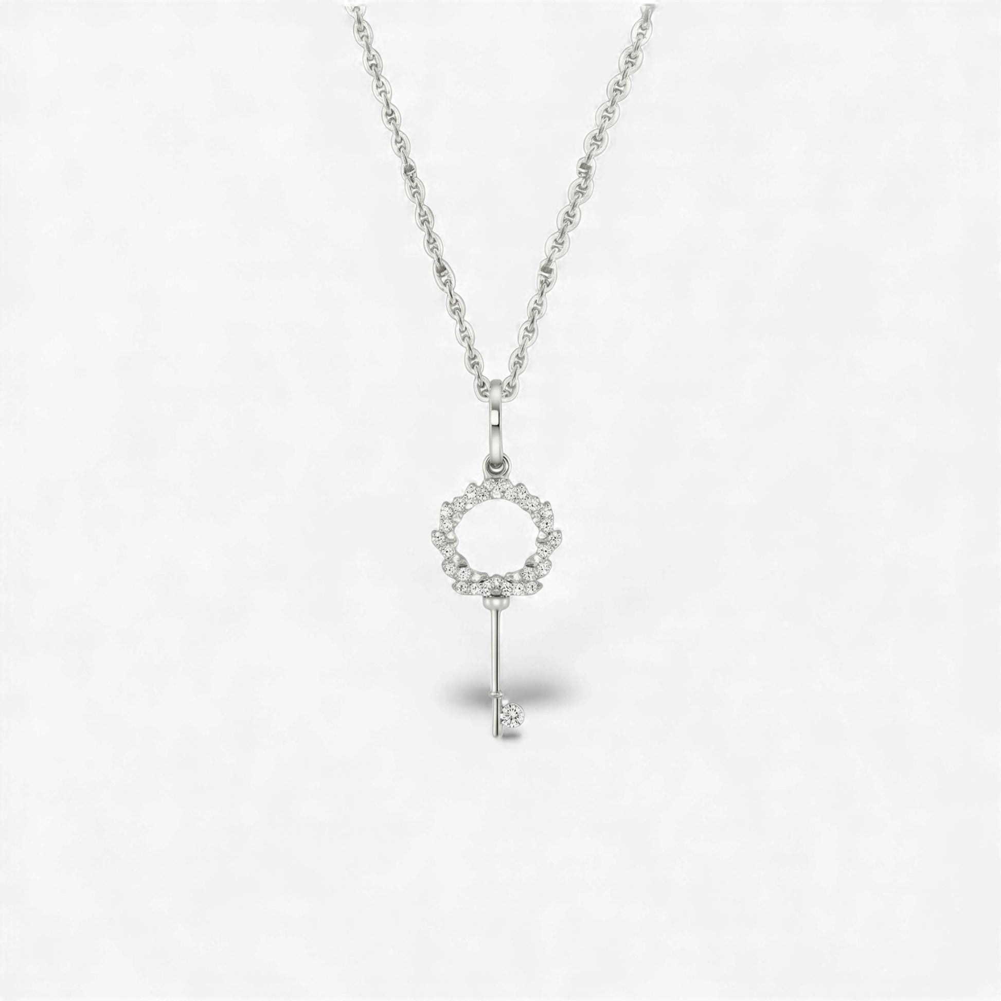 Timeless, symbolic, and elegantly radiant, the BOZ Forever Key Diamond Necklace is a striking emblem of love, opportunity, and lasting connection. Featuring a finely crafted key pendant adorned with brilliant natural diamonds, this necklace represents the key to the heart, the future, or cherished dreams.
