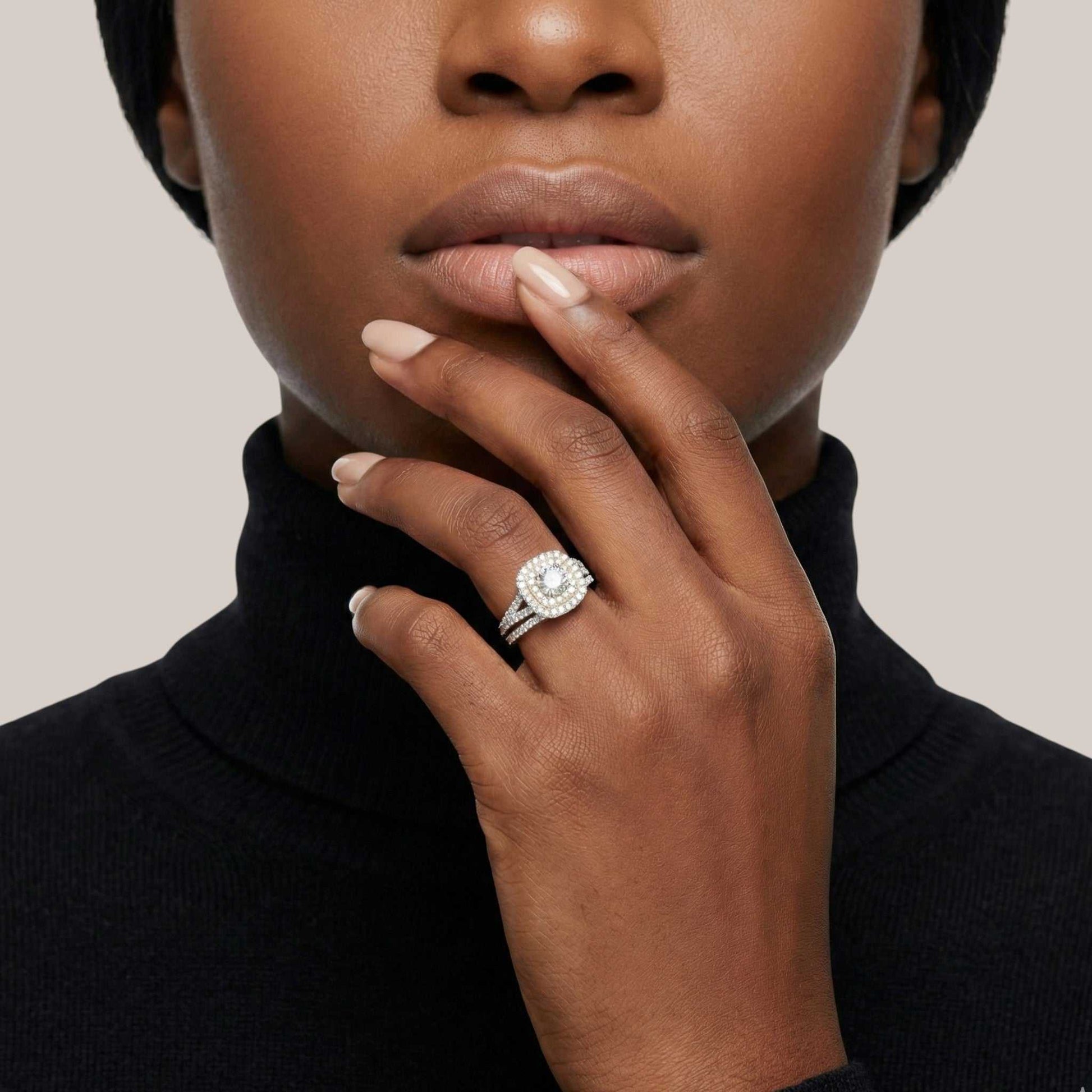 Home Collections Rings Audre Cushion Cut Moissanite Bridal Set in 925 Sterling Silver