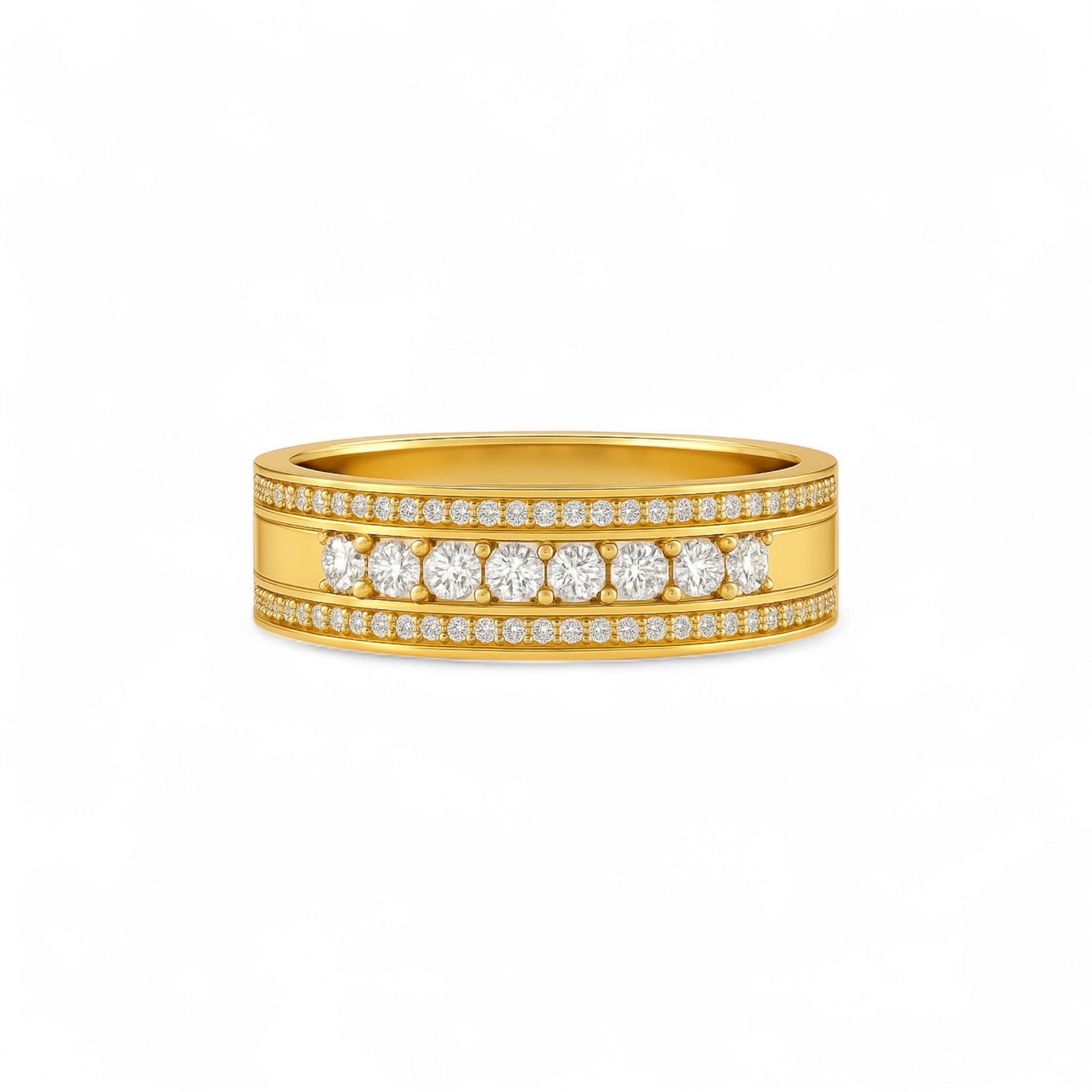 The Charming Natural Diamond Wedding Band in 18K Gold is a timeless symbol of everlasting love. This beautifully crafted band features a row of natural round-cut diamonds, meticulously set to maximize sparkle and create a seamless flow of brilliance across the finger.