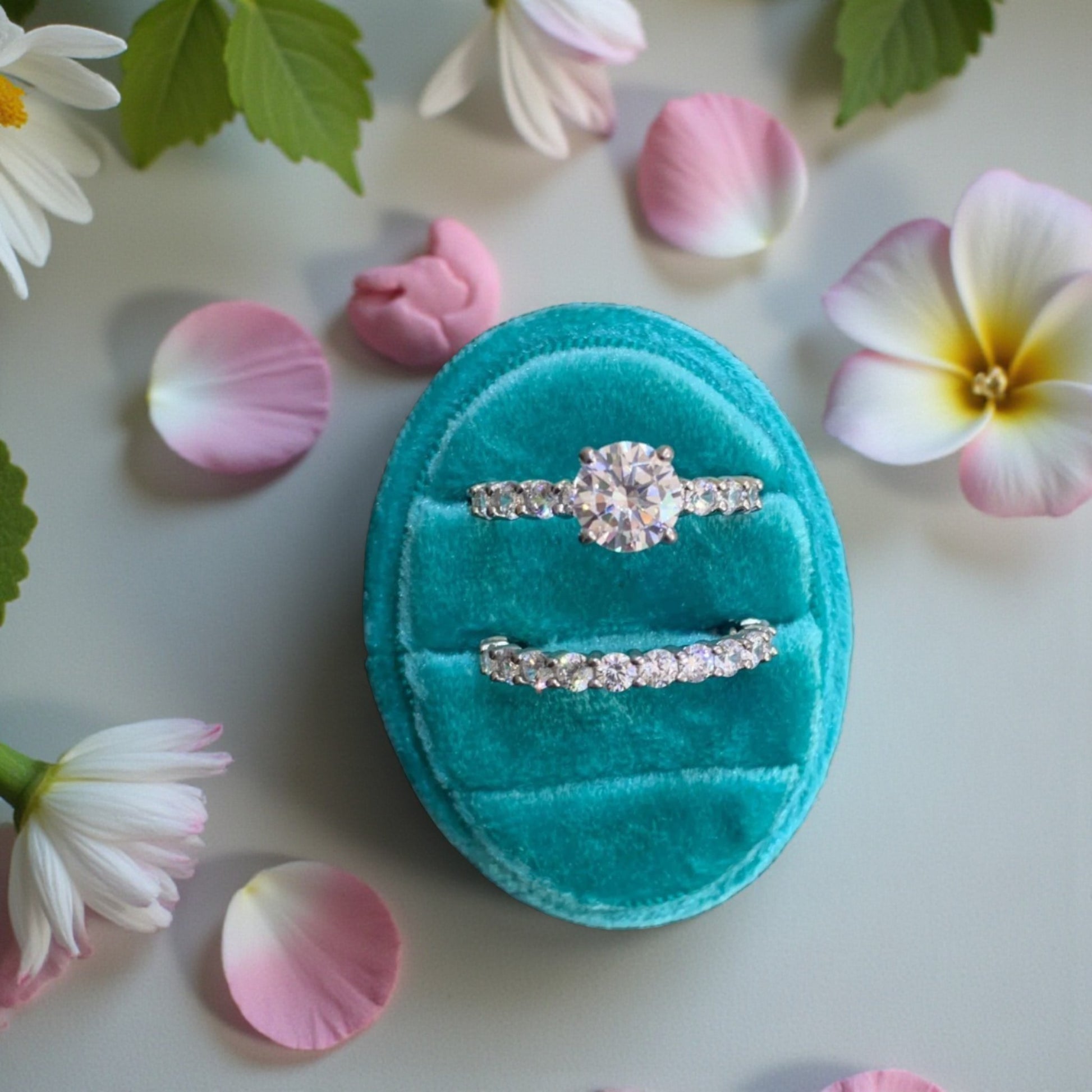 Timeless brilliance meets refined elegance in the Vega Round CZ Bride Set. Beautifully crafted from premium 925 sterling silver, this stunning bridal set features a perfectly cut round cubic zirconia at its center, celebrated for its classic shape and dazzling fire.